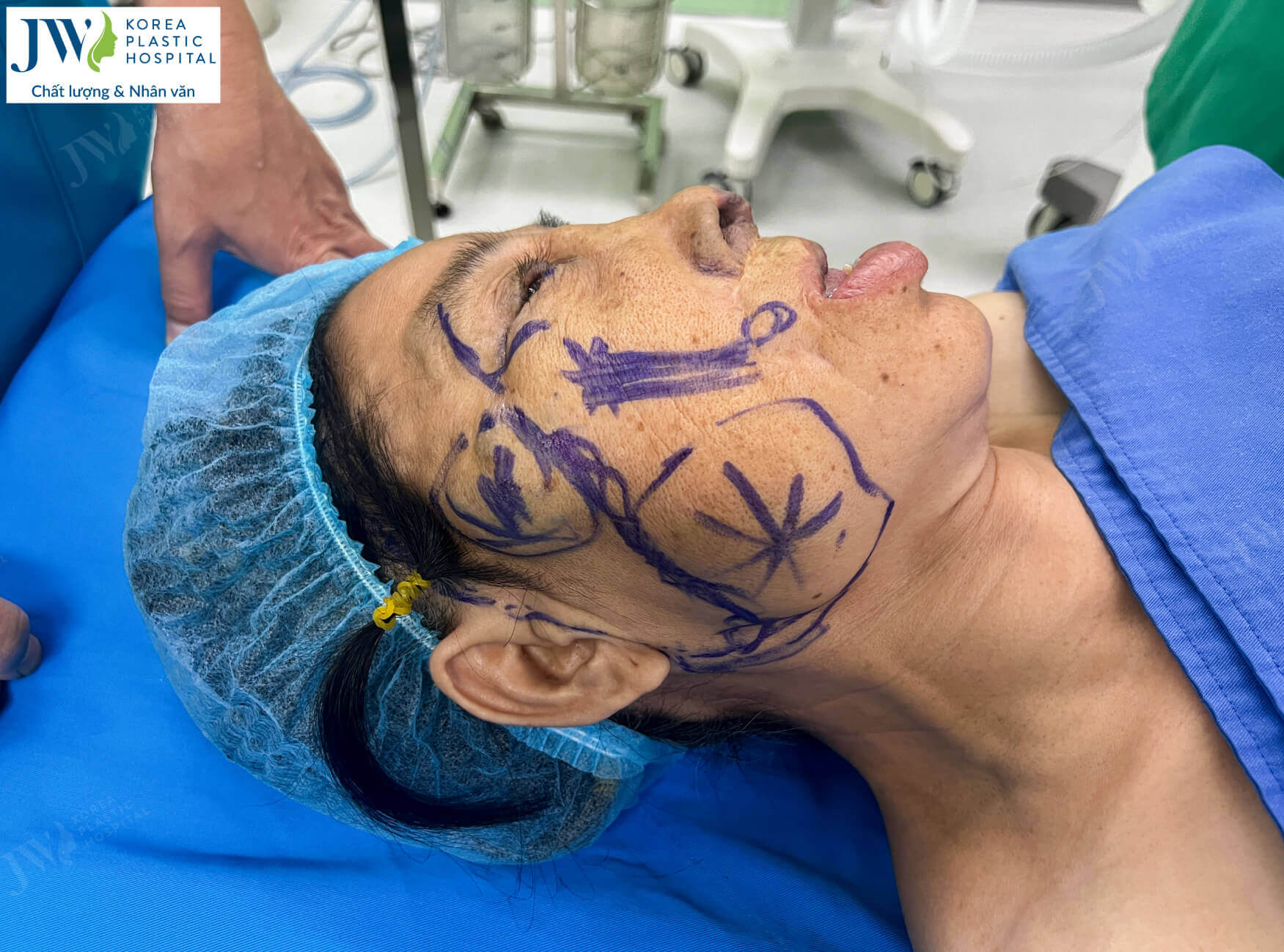 Bác sĩ Tú Dung tiến hành chuyển vạt cơ thái dương và Căng da mặt SMAS